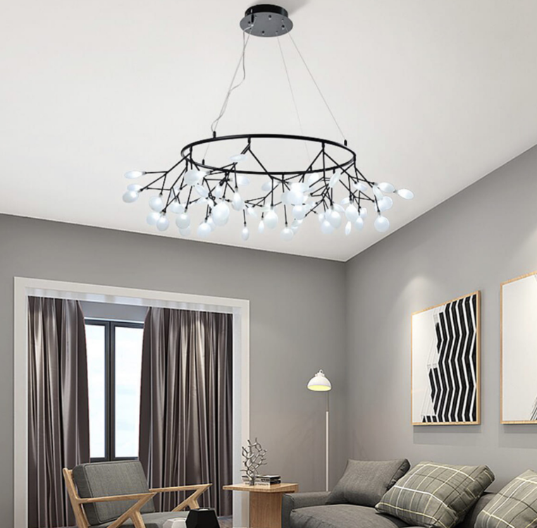 Сучасна чорна люстра кільце в флористичних мотивах на 27/36/45 білих, прозорих або графітових плафонів - пелюсток