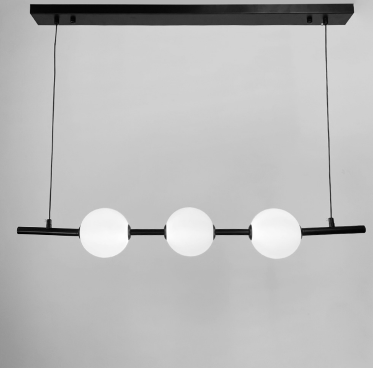 Видовжена чорна люстра з 3-ма акриловими кульками 910B/3 BK